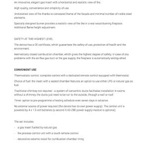 | Τύπος προϊόντος | Ενεργειακό τζάκι φυσικού αερίου |