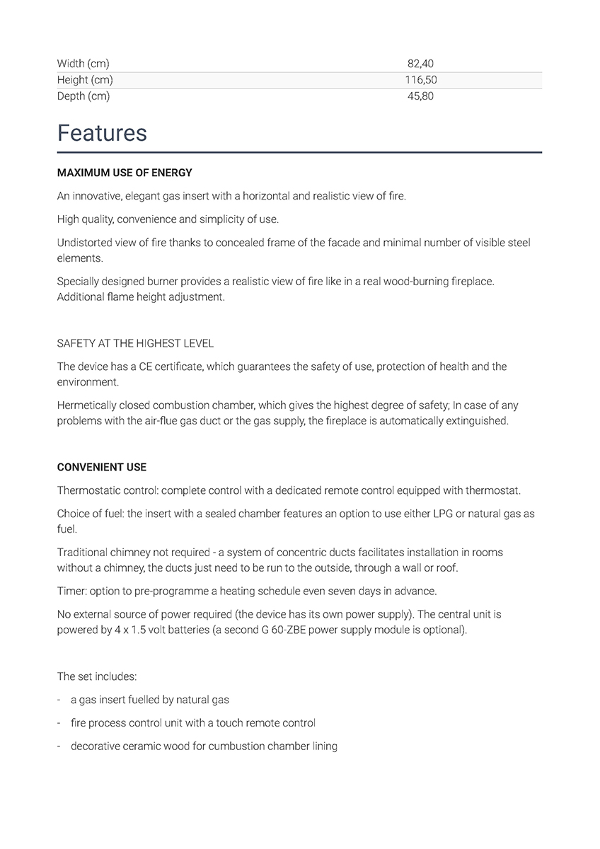 | Τύπος προϊόντος | Ενεργειακό τζάκι φυσικού αερίου |