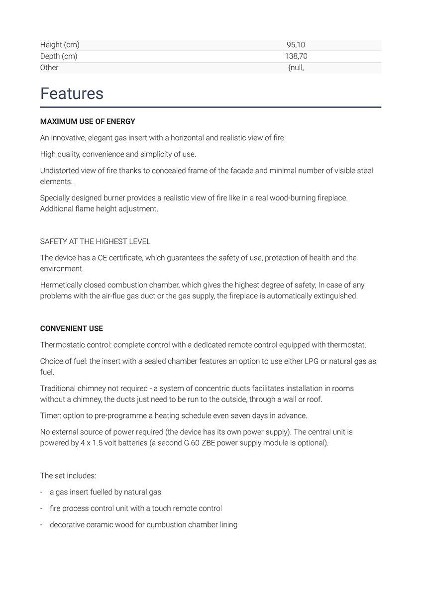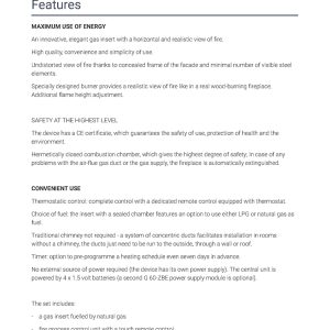 | Τύπος προϊόντος | Ενεργειακό τζάκι φυσικού αερίου |