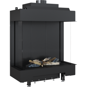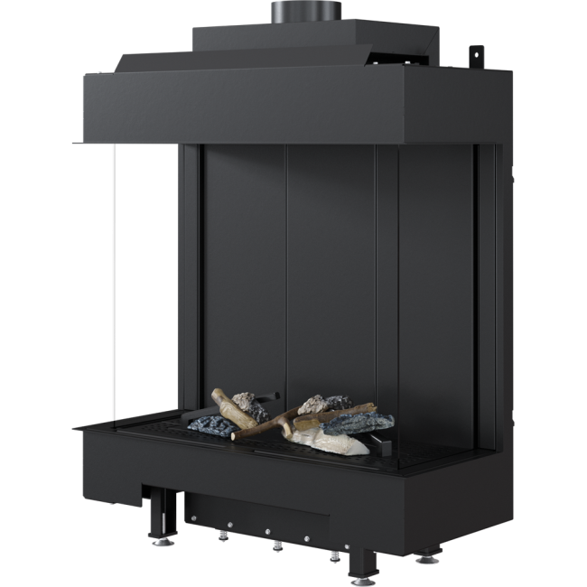 Χαλύβδινο Ενεργειακό Τζάκι Φυσικού Αερίου Kratki Leo LP 76 62 G20 5.2-8.6 kW Τρίπλευρο με Κλειστό Θάλαμο Καύσης Κεραμικά Ξύλα και Τηλεχειριστήριο