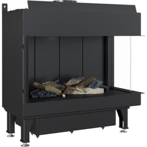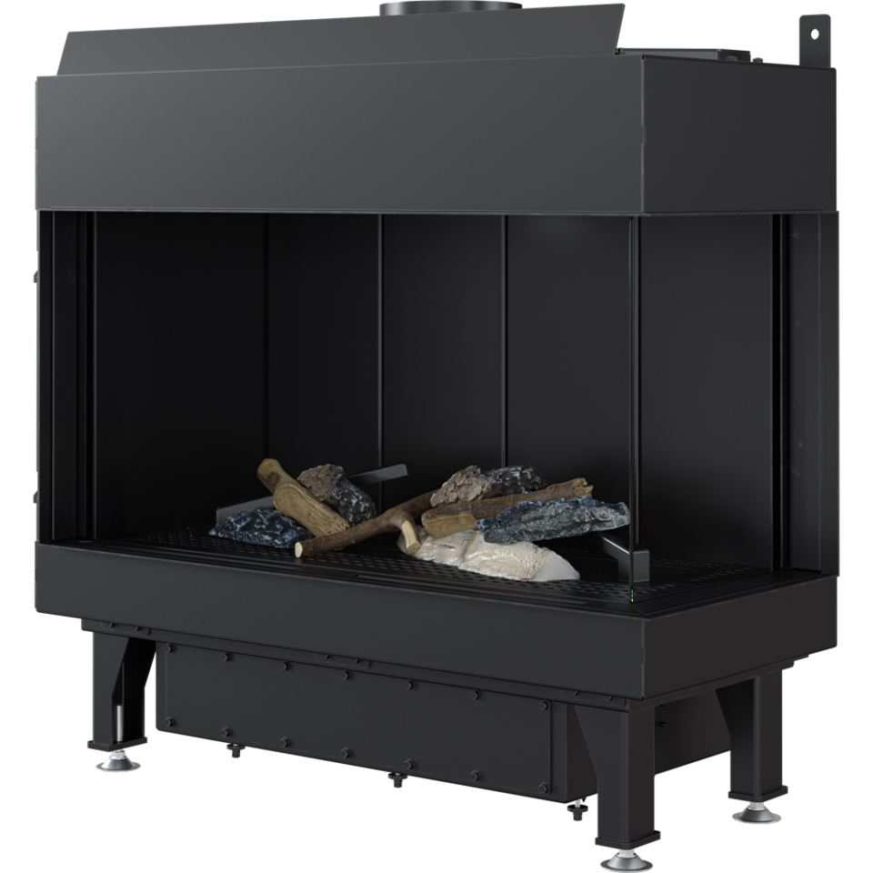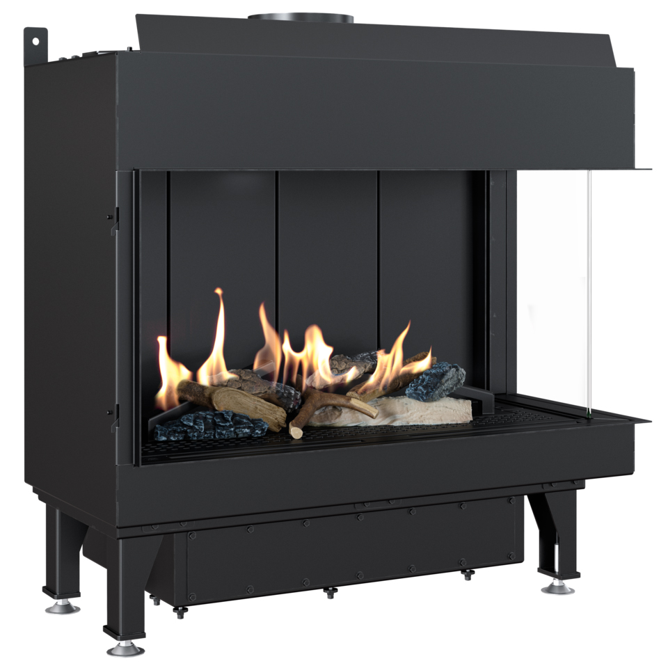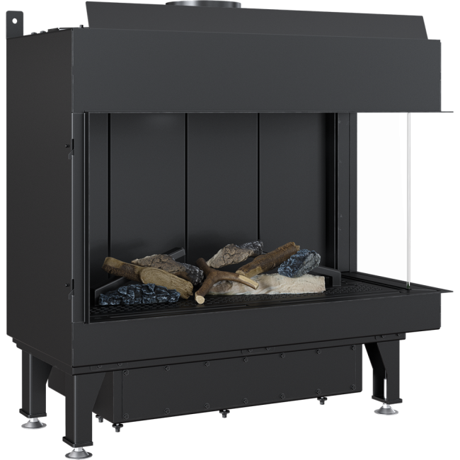 Χαλύβδινο Ενεργειακό Τζάκι Φυσικού Αερίου Kratki Leo P 70 G20 3.5-7.3 kW Δεξί Γωνιακό με Κλειστό Θάλαμο Καύσης Κεραμικά Ξύλα και Τηλεχειριστήριο