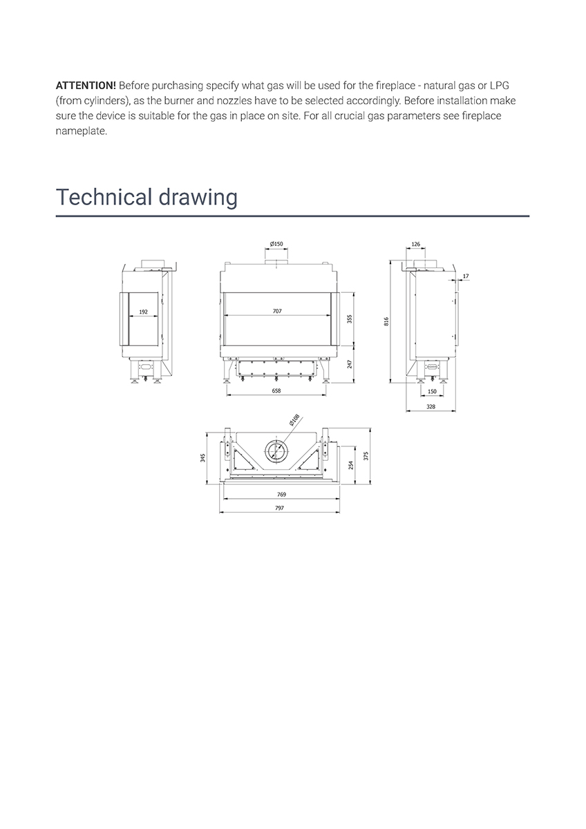 ΠΡΟΣΟΧΗ! Πριν από την αγορά διευκρινίστε τι αέριο θα χρησιμοποιηθεί για το τζάκι – φυσικό αέριο ή υγραέριο (από φιάλες), καθώς ο καυστήρας και τα ακροφύσια πρέπει να επιλεγούν ανάλογα. Πριν από την εγκατάσταση βεβαιωθείτε ότι η εστία είναι κατάλληλη για το αέριο που υπάρχει στον χώρο.