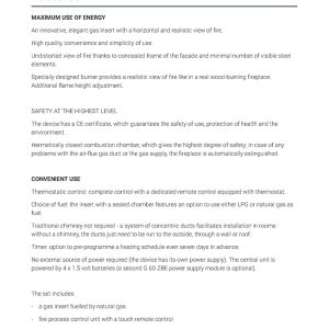 | Τύπος προϊόντος | Ενεργειακό τζάκι φυσικού αερίου |