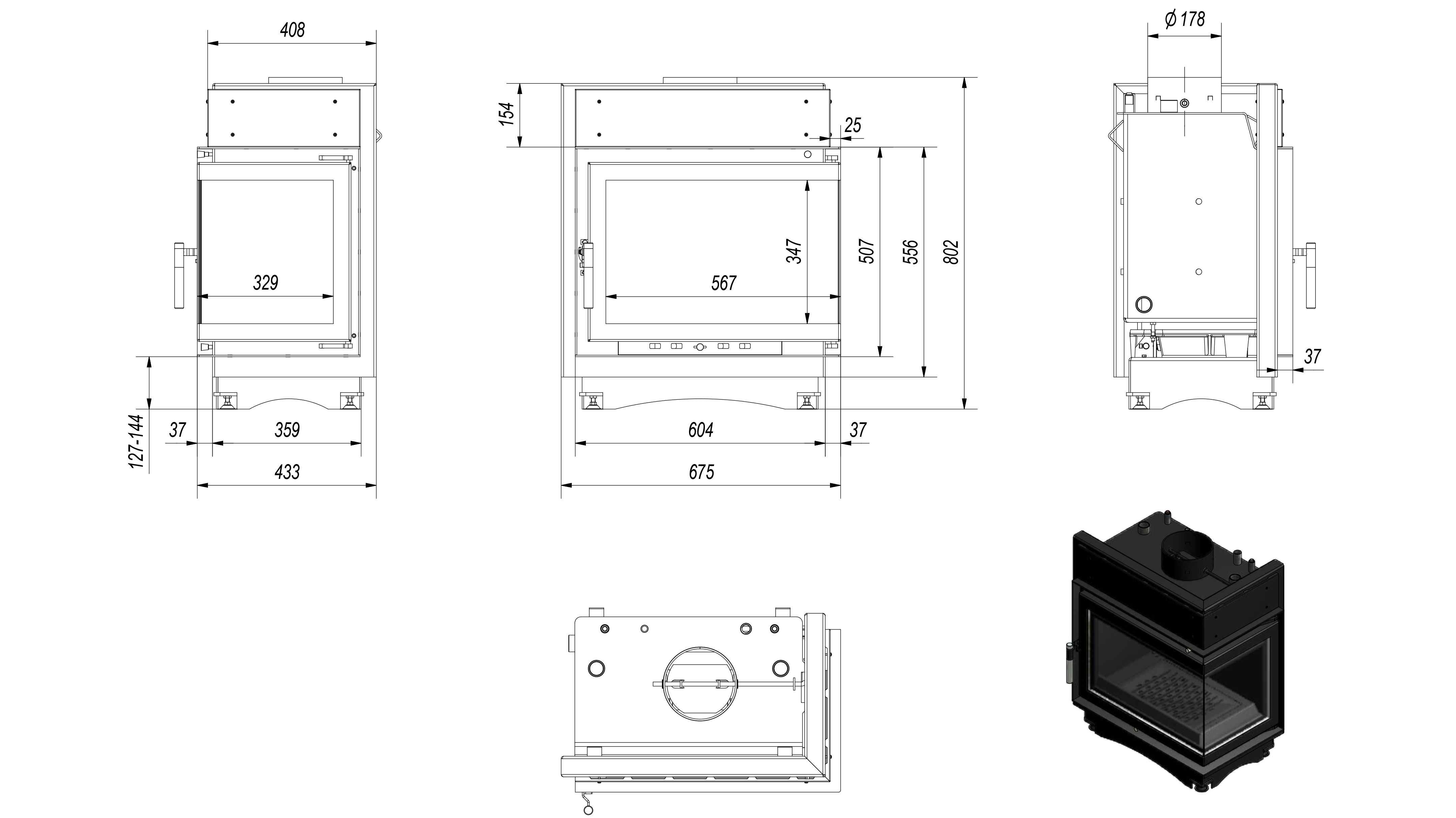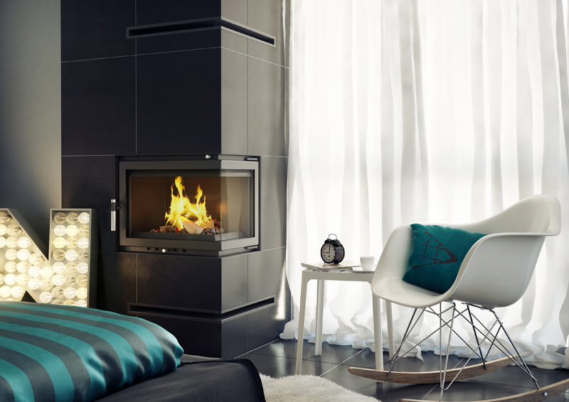 Χαλύβδινο Ενεργειακό Τζάκι Λέβητας Ξύλου Kratki Maja PW BP 12 BS W 3.5-10 kW Δεξί Γωνιακό Ανοιγόμενο με Βάση από Χυτοσίδηρο