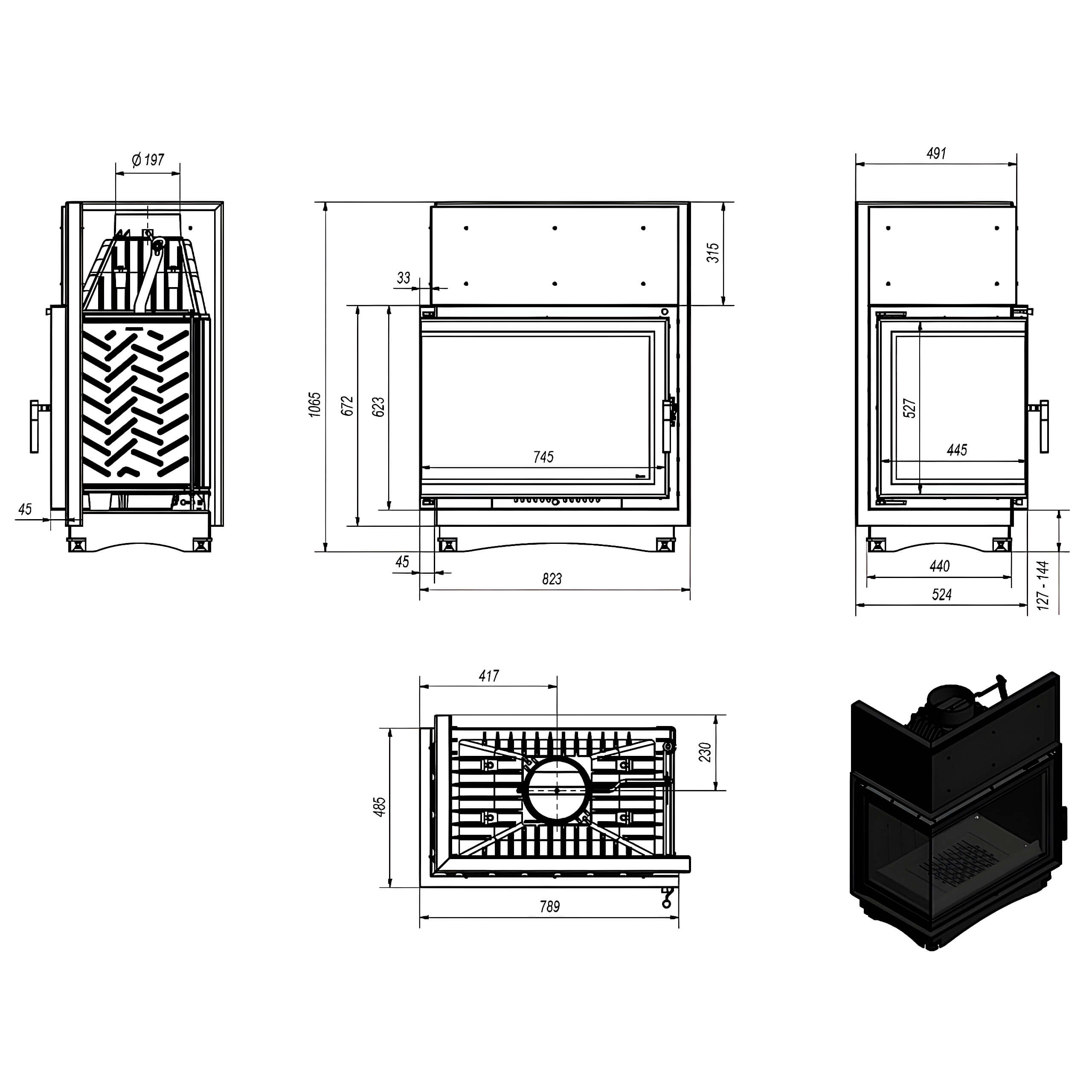 Μαντεμένιο Ενεργειακό Τζάκι Ξύλου Kratki Amelia L BS Deco Αριστερό 10–25 kW ∅ 200