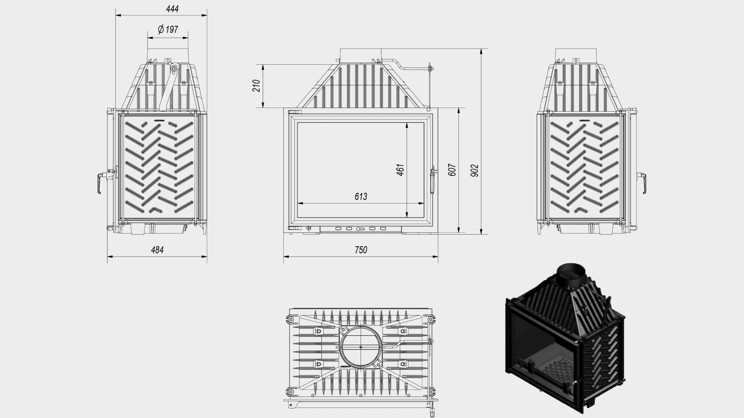 Μαντεμένιο Ενεργειακό Τζάκι Ξύλου Kratki Amelia PF 10–25 kW ∅ 200