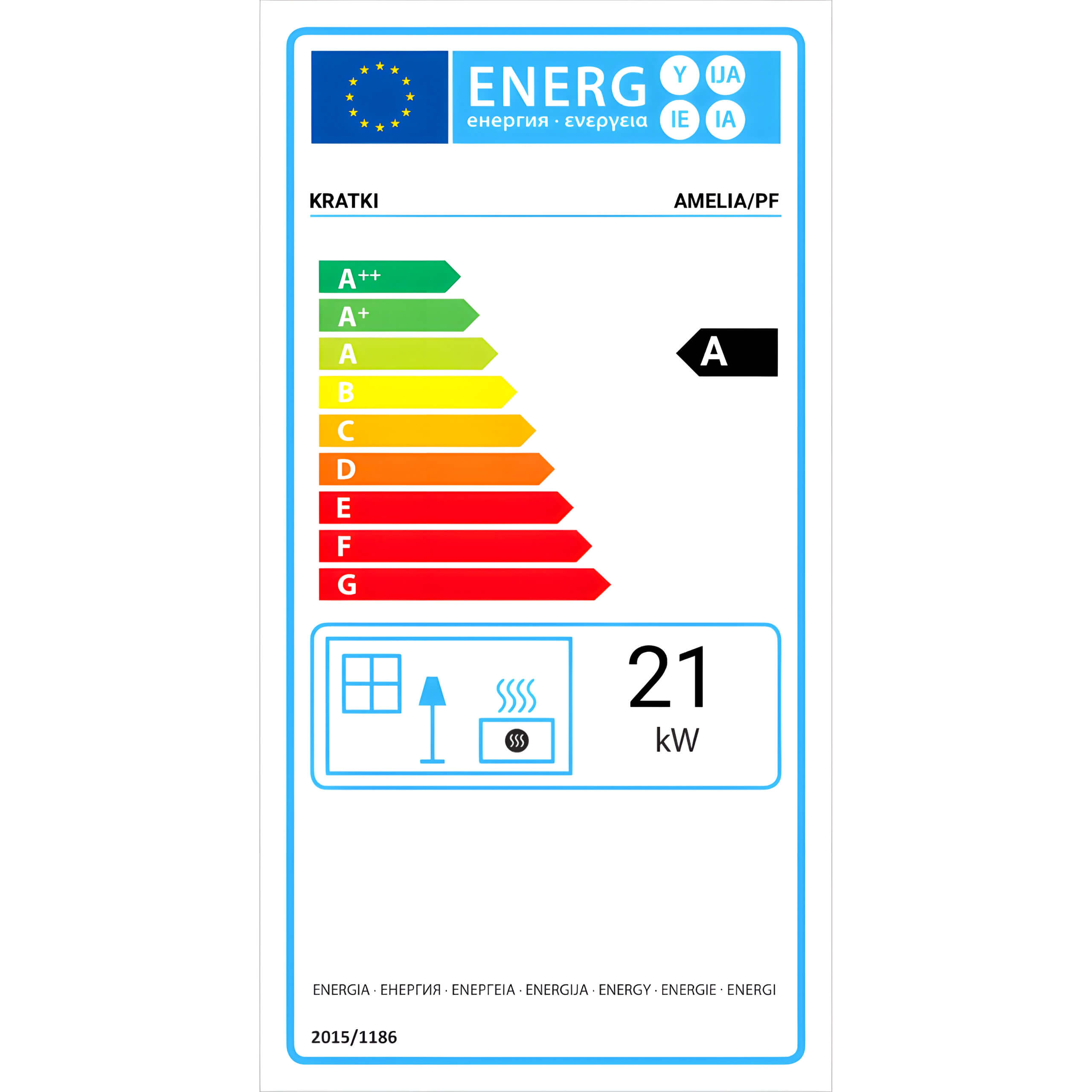 Το Kratki Amelia PF αποτελεί ίσιο ενεργειακό τζάκι ξύλου από χυτοσίδηρο, με flat όψη. Διαθέτει ρυθμιζόμενη ωφέλιμη ισχύ 10-25 kW με θερμική απόδοση 80%, ανοιγόμενη πόρτα με άνοιγμα προς τα αριστερά και πυρίμαχο κεραμικό τζάμι σε μαύρο μαντεμένιο πλαίσιο.