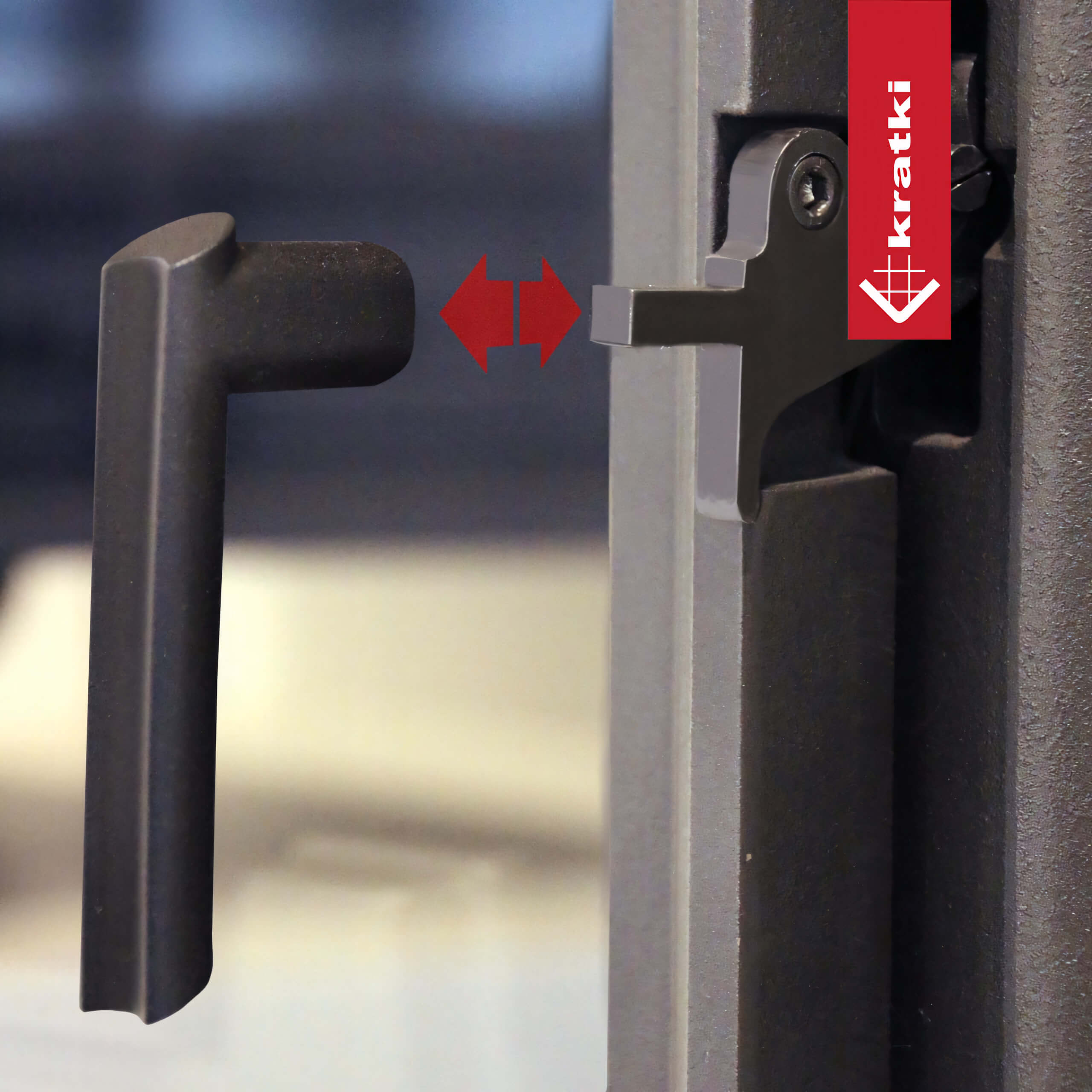 • Η ανοιγόμενη πόρτα του Kratki Antek PF διαθέτει κατασκευή από κλειστή μεταλλική διατομή, που εξασφαλίζει σταθερότητα και αντοχή ακόμα και στις πιο απαιτητικές θερμοκρασίες.