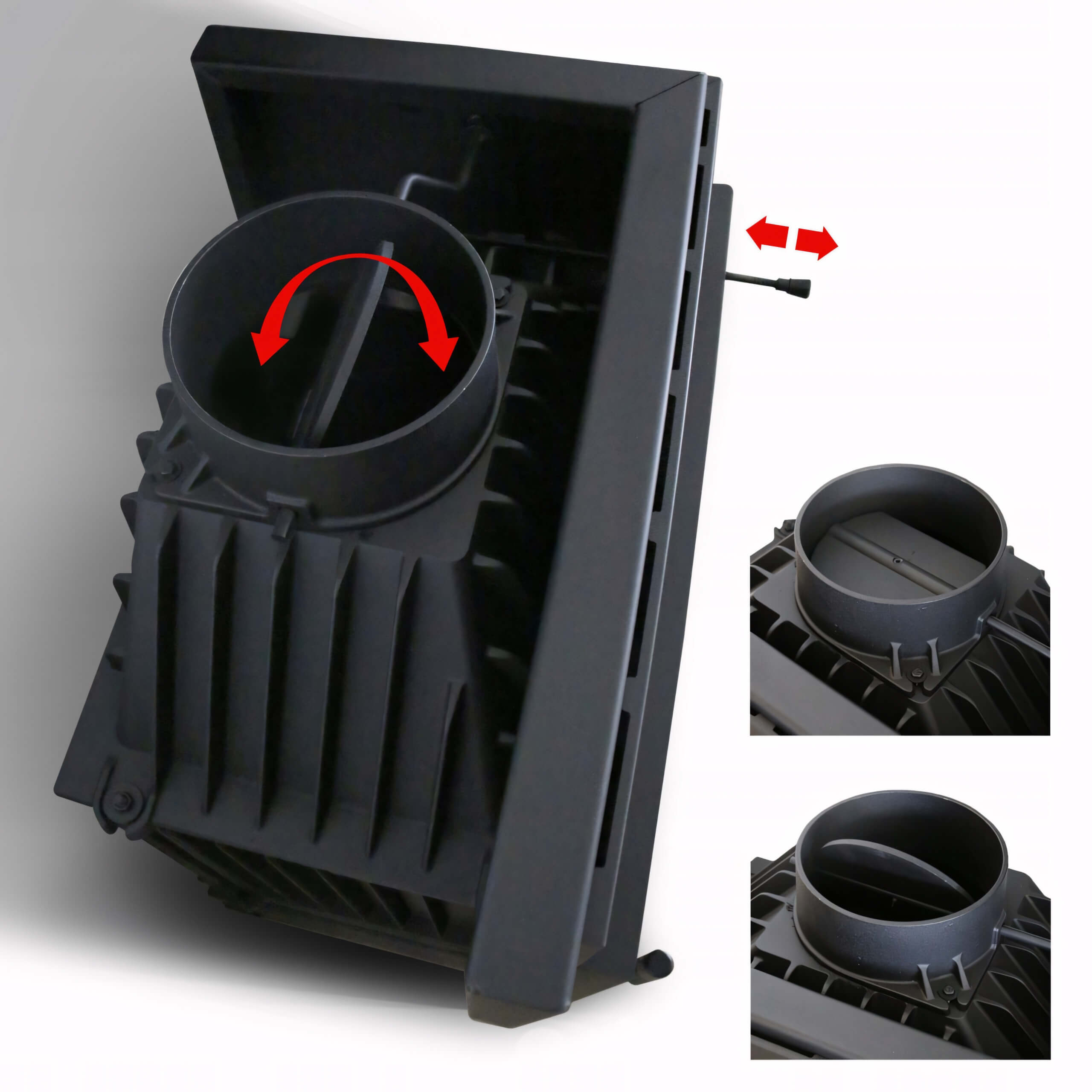 • Η δευτερογενής καύση των σωματιδίων του ξύλου υλοποιείται χάρη στον κόφτη καυσαερίων (deflector) που επεκτείνει τη διαδρομή τους πριν εισέλθουν στην καμινάδα.