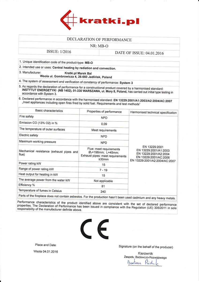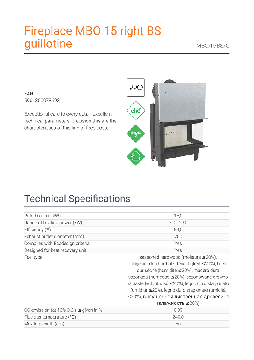 Το Kratki MBO P BS G αποτελεί ενεργειακό τζάκι ξύλου από χάλυβα, δυο όψεων με δεξιά γωνία. Διαθέτει ισχύ 15kW, θερμική απόδοση 83%, ανοιγόμενη και συρόμενη πόρτα, και θερμοανθεκτικό κεραμικό κρύσταλλο, διακοσμημένο με μεταξοτυπία.