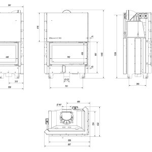 Ενεργειακό Τζάκι Α+ Kratki MBO P BS G 15kW Δεξί Γωνιακό Συρόμενο Lift-Up από Χάλυβα & Λευκά Κεραμικά
