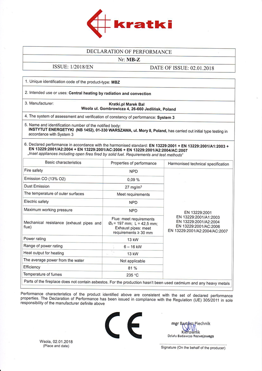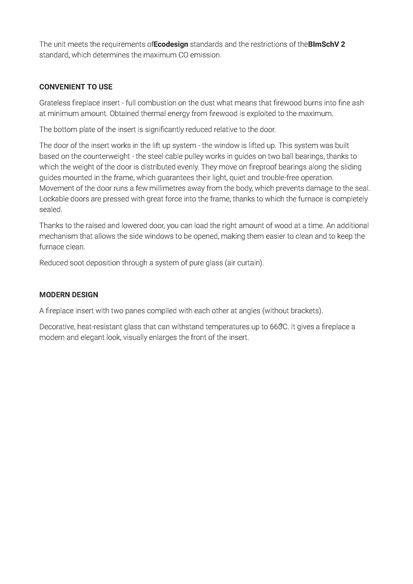 Πληροί τις απαιτήσεις του ευρωπαϊκού προτύπου οικολογικού σχεδιασμού Ecodesign 2022. Επιπλέον, υπακούει στους περιορισμούς του αυστηρού γερμανικού προτύπου BlmSchV 2, που καθορίζει τη μέγιστη επιτρεπτή εκπομπή μονοξειδίου του άνθρακα (CO) στο περιβάλλον.