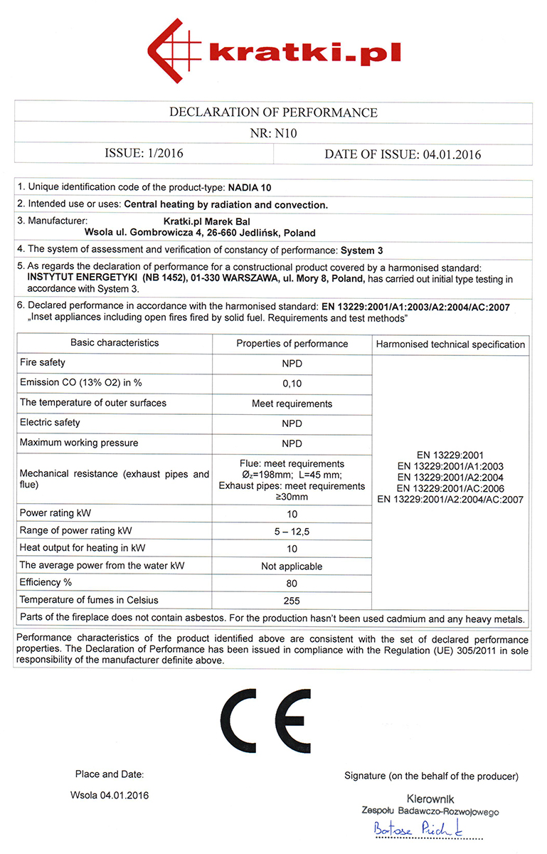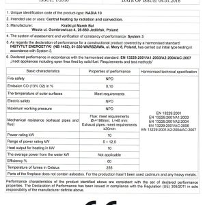 Διαθέτει πιστοποιήσεις της Ευρωπαϊκής Ένωσης. Συγκεκριμένα, πληροί τις απαιτήσεις του ευρωπαϊκού προτύπου οικολογικού σχεδιασμού Ecodesign 2022. Επιπλέον, υπακούει στους περιορισμούς του αυστηρού γερμανικού προτύπου BlmSchV 2, που καθορίζει τη μέγιστη επιτρεπτή εκπομπή μονοξειδίου του άνθρακα (CO) στο περιβάλλον.