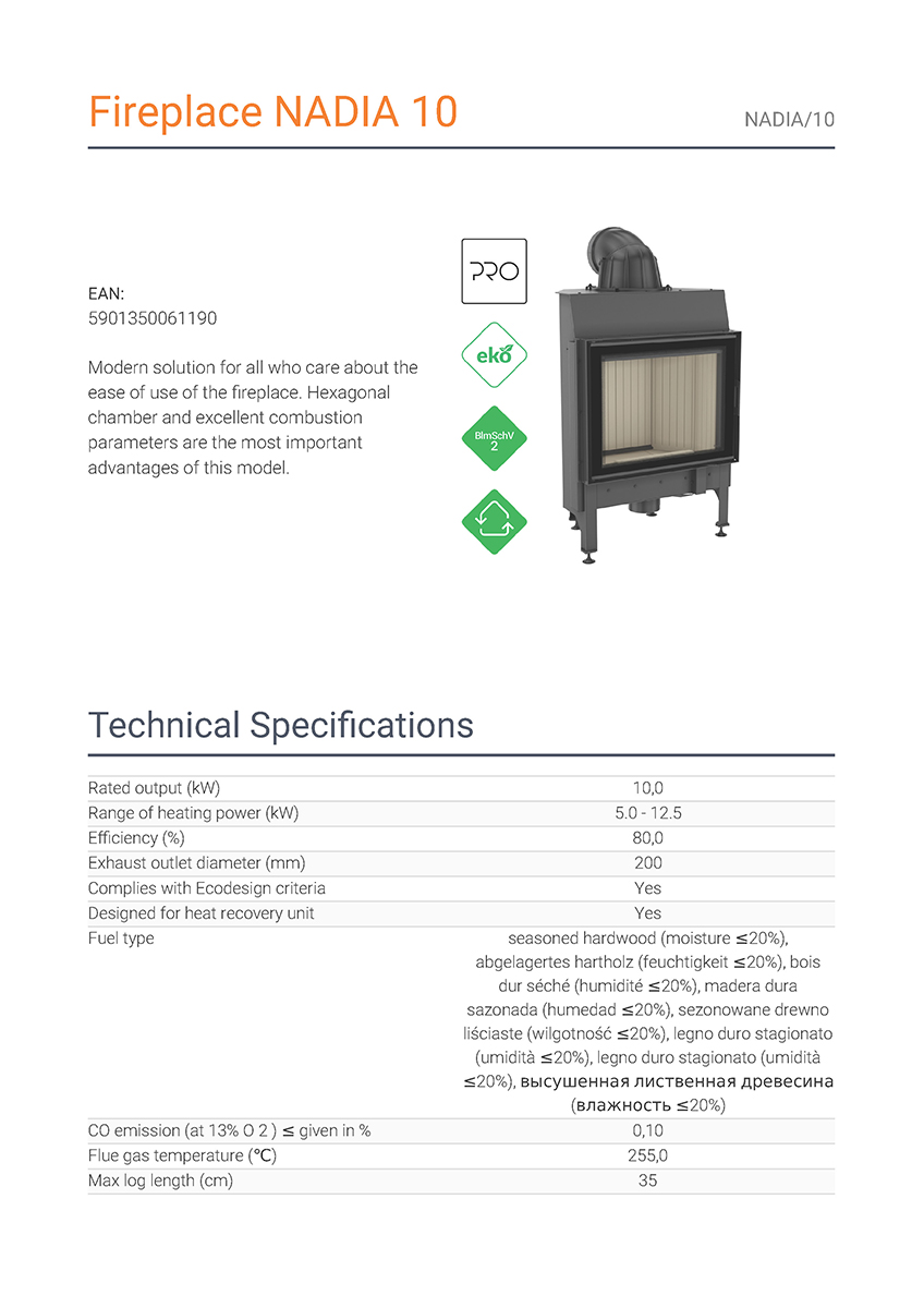 Το Nadia 10 προσφέρει μοντέρνα, αποδοτική και οικονομική θέρμανση 5-12.5 kW που πληροί τα πρότυπα οικολογικού σχεδιασμού Ecodesign, εξασφαλίζοντας ελάχιστες εκπομπές ρύπων προς το περιβάλλον και πολύ υψηλή ενεργειακή απόδοση 80%.