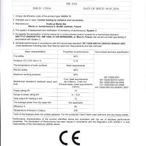 Διαθέτει πιστοποιήσεις της Ευρωπαϊκής Ένωσης. Συγκεκριμένα, πληροί τις απαιτήσεις του ευρωπαϊκού προτύπου οικολογικού σχεδιασμού Ecodesign 2022. Επιπλέον, υπακούει στους περιορισμούς του αυστηρού γερμανικού προτύπου BlmSchV 2, που καθορίζει τη μέγιστη επιτρεπτή εκπομπή μονοξειδίου του άνθρακα στο περιβάλλον.