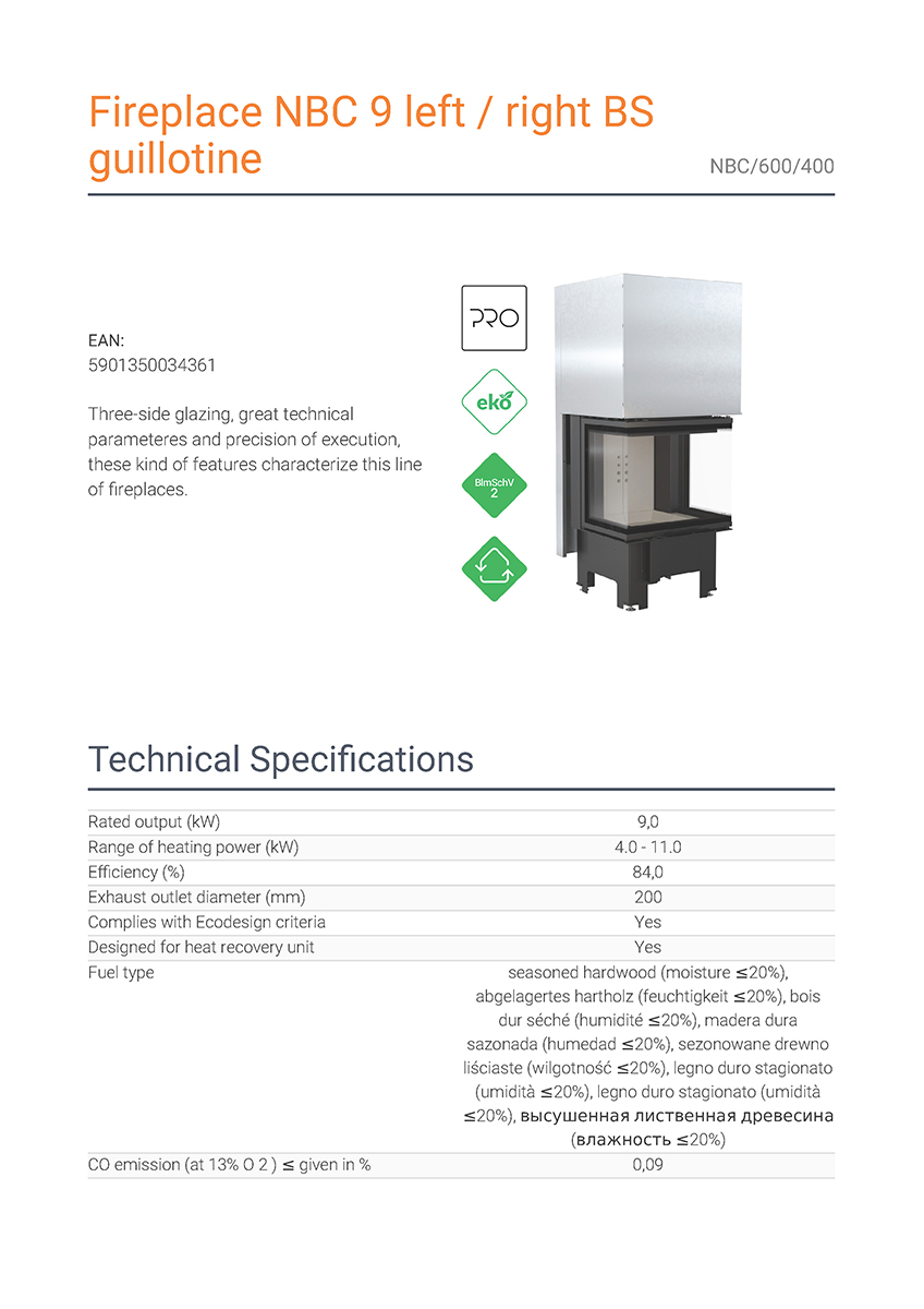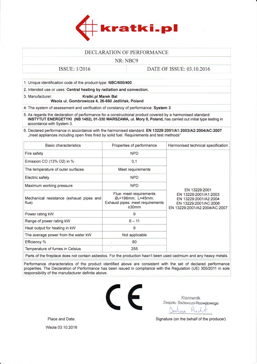 Το Kratki NBC 600 400 αποτελεί τρίπλευρο ενεργειακό τζάκι ξύλου από χάλυβα. Διαθέτει ωφέλιμη ισχύ 4-11 kW, θερμική απόδοση 84%, συρόμενη και ανοιγόμενη πόρτα, καθώς και θερμοανθεκτικό κεραμικό κρύσταλλο, διακοσμημένο με μεταξοτυπία.