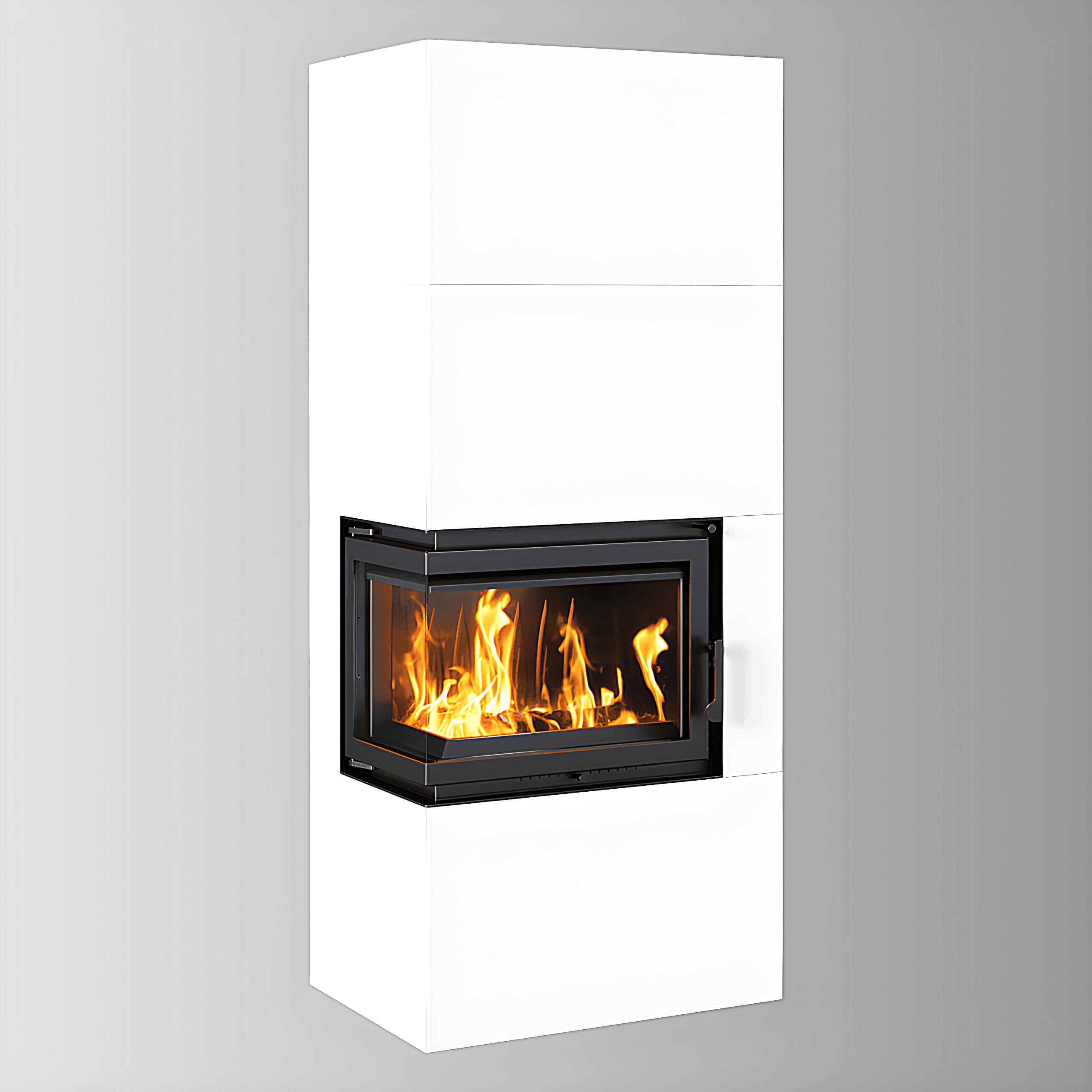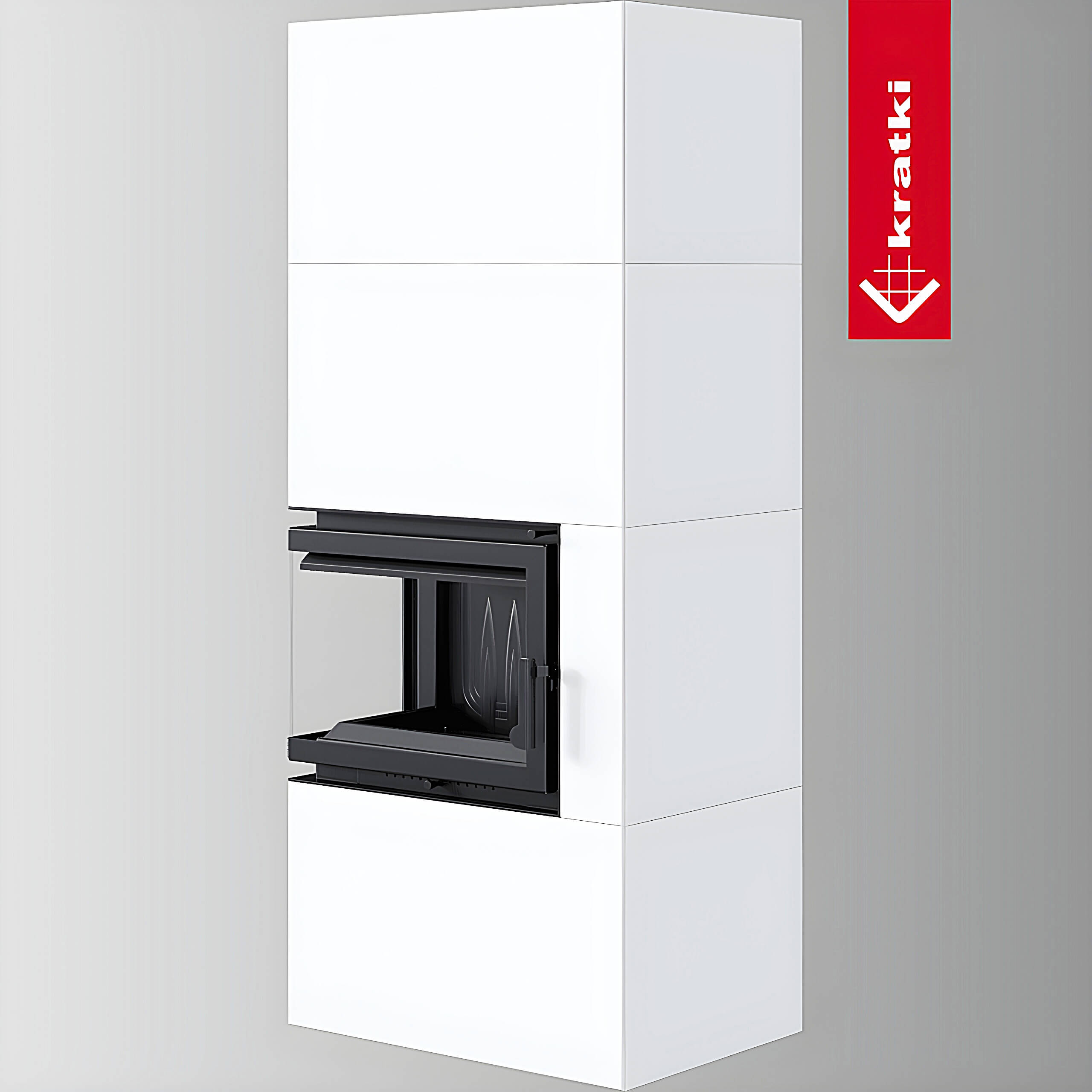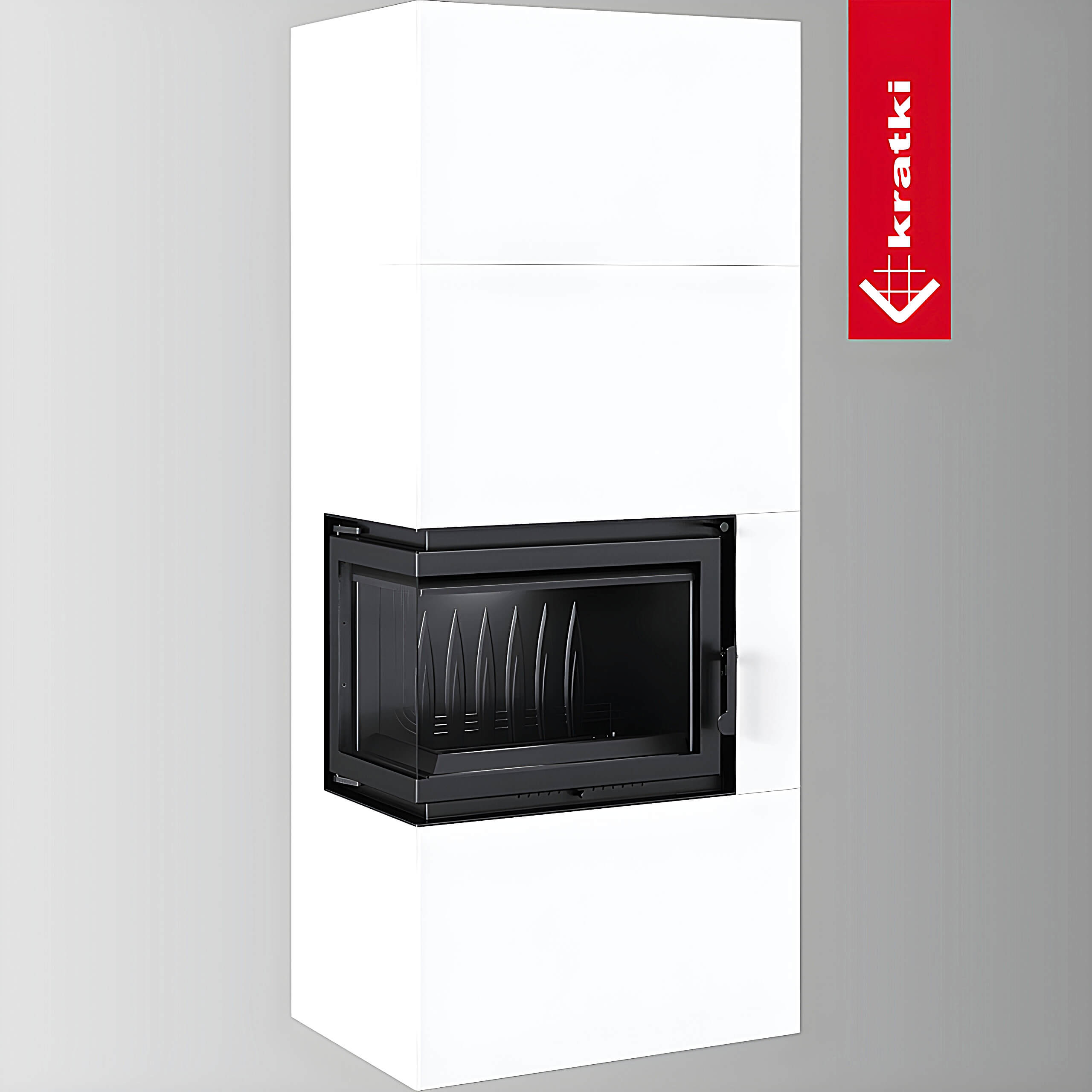 Μαντεμένιο Ενεργειακό Τζάκι Ξύλου Kratki Simple Box L S Bianco 3-10 kW Αριστερό Γωνιακό Ανοιγόμενο με Λευκή Μεταλλική Επένδυση