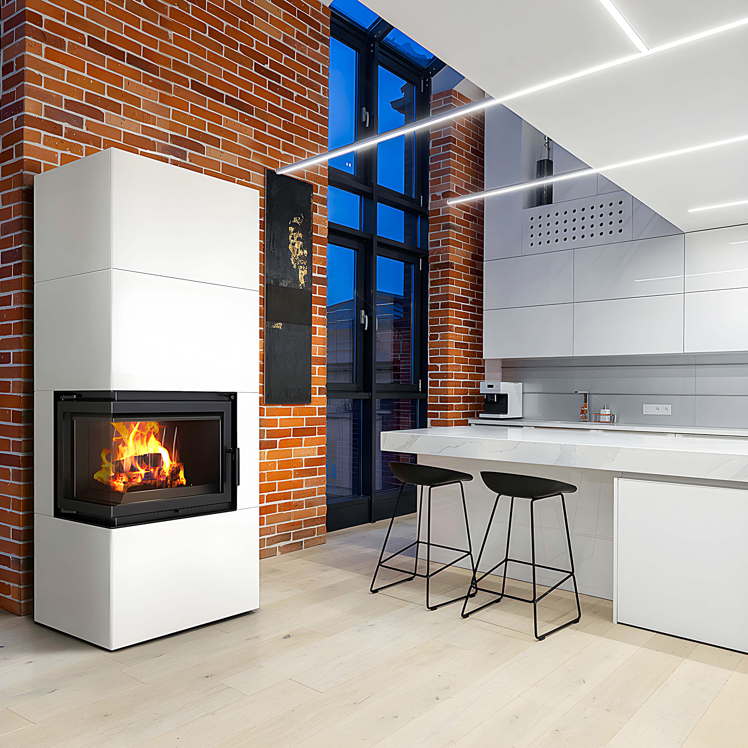 Μοντέρνο ενεργειακό τζάκι Kratki Simple Box L S Bianco