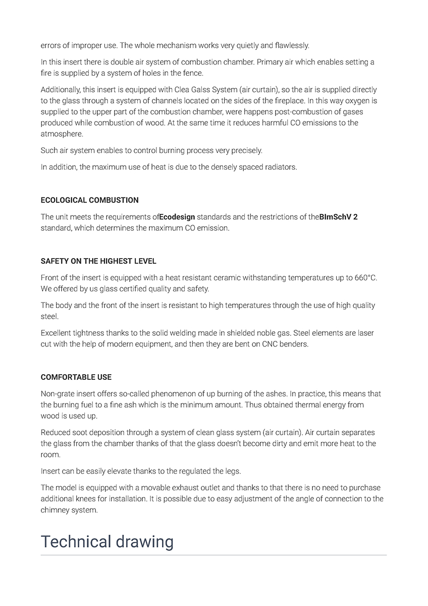 Πληροί τις απαιτήσεις του ευρωπαϊκού προτύπου οικολογικού σχεδιασμού Ecodesign 2022. Επιπλέον, υπακούει στους περιορισμούς του αυστηρού γερμανικού προτύπου BlmSchV 2, που καθορίζει τη μέγιστη επιτρεπτή εκπομπή μονοξειδίου του άνθρακα (CO) στο περιβάλλον.
