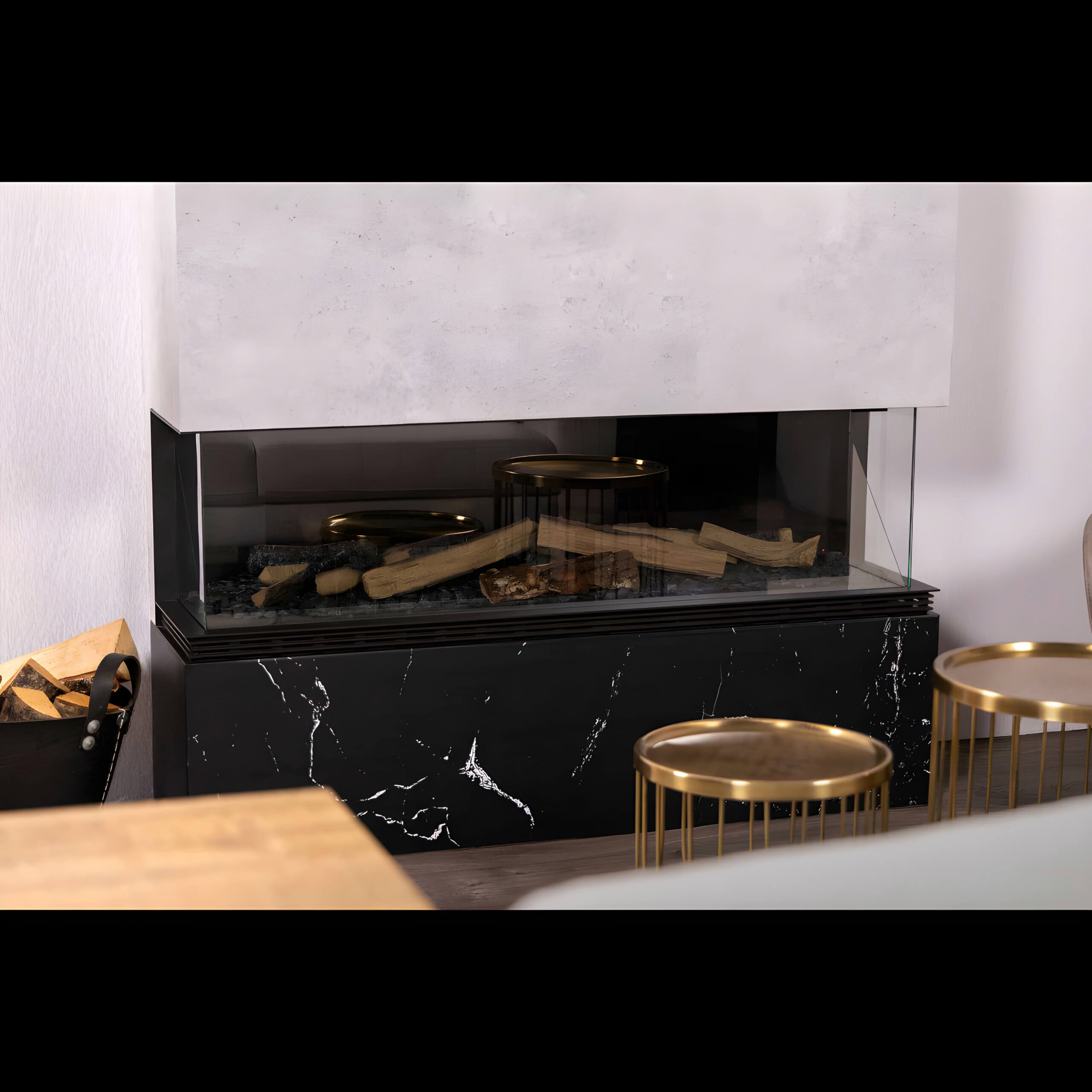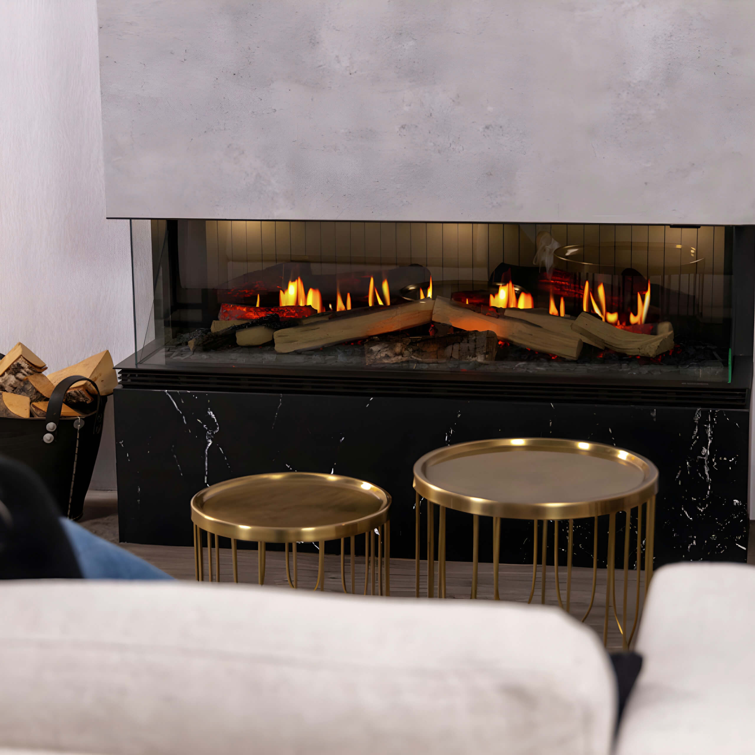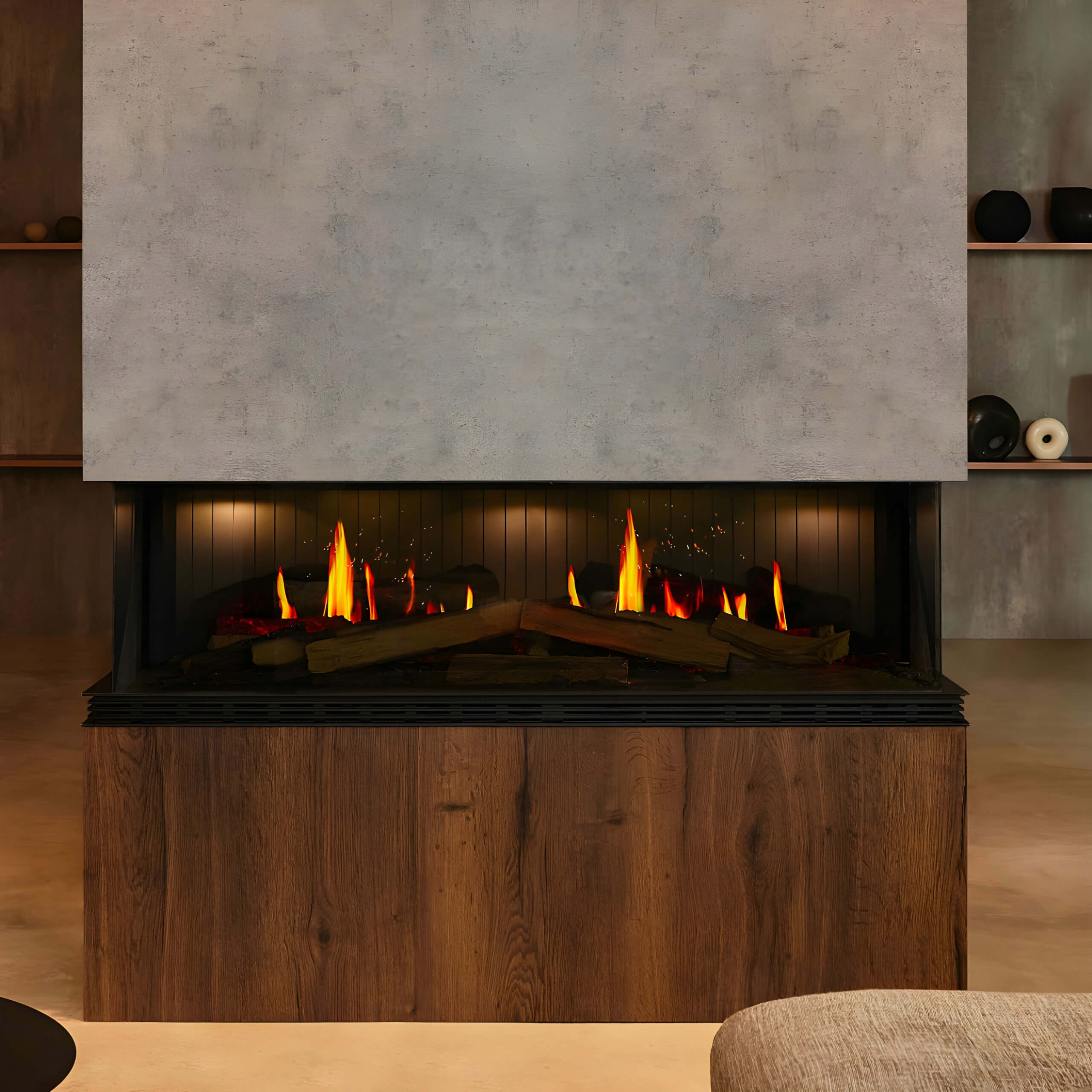 Design ποιοτικών υλικών και εκπληκτικές εικονικές σπίθες βγαίνουν μέσα από τρισδιάστατα κούτσουρα, τα οποία εσωτερικά λαμπυρίζουν με φωτισμό LED. Επιπλέον, η ηλεκτρική εστία διαθέτει ένα εσωτερικό ηχητικό σύστημα που αναπαράγει ηχητικές λεπτομέρειες από φλεγόμενα ξύλα, προσδίδοντας, με αυτόν τον τρόπο, ένα τέλειο αποτέλεσμα που ενισχύει την αίσθηση ενός πραγματικού τζακιού. Η τεχνολογία αυτή προσφέρει την αίσθηση μιας ζωντανής φλόγας χωρίς την ανάγκη ύπαρξης μιας παραδοσιακής εστίας.