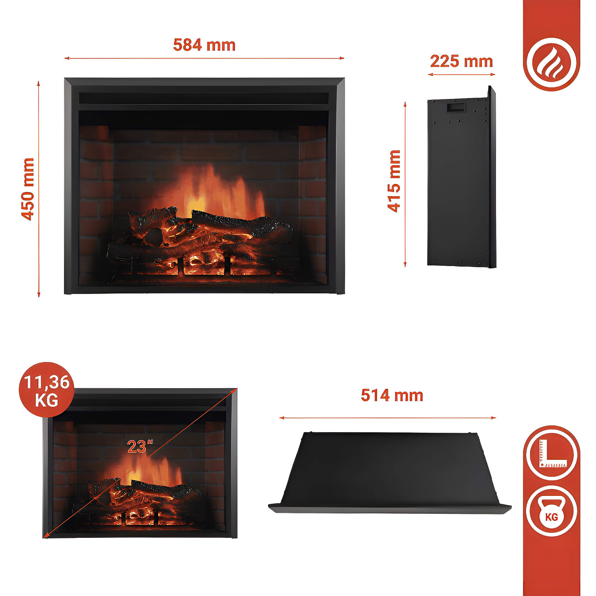 Το ηλεκτρικό τζάκι Kaminio Luca 23 έχει ένα καθαρό design με διακόσμηση από πυρότουβλα στο πίσω μέρος και ένα εντυπωσιακό εφέ φλόγας με ρυθμιζόμενη επιλογή ανάμεσα σε δώδεκα διαφορετικούς χρωματισμούς. Η ηλεκτρική εστία διαθέτει πολύ μεγάλο οπτικό βάθος, 22 εκατοστών, όπως τα παραδοσιακά τζάκια για μεγαλύτερη αληθοφάνεια. Η ρεαλιστική απεικόνιση της τρισδιάστατης φλόγας συνδυάζεται με πολλαπλές λειτουργίες, πλήκτρα αφής, τηλεχειριστήριο και επιλογή θέρμανσης με θερμοστάτη, από 900 έως 1800W. Μπορεί να εντοιχιστεί σε κάποια κατασκευή ή ακόμα και να τοποθετηθεί σε ήδη υπάρχον τζάκι.