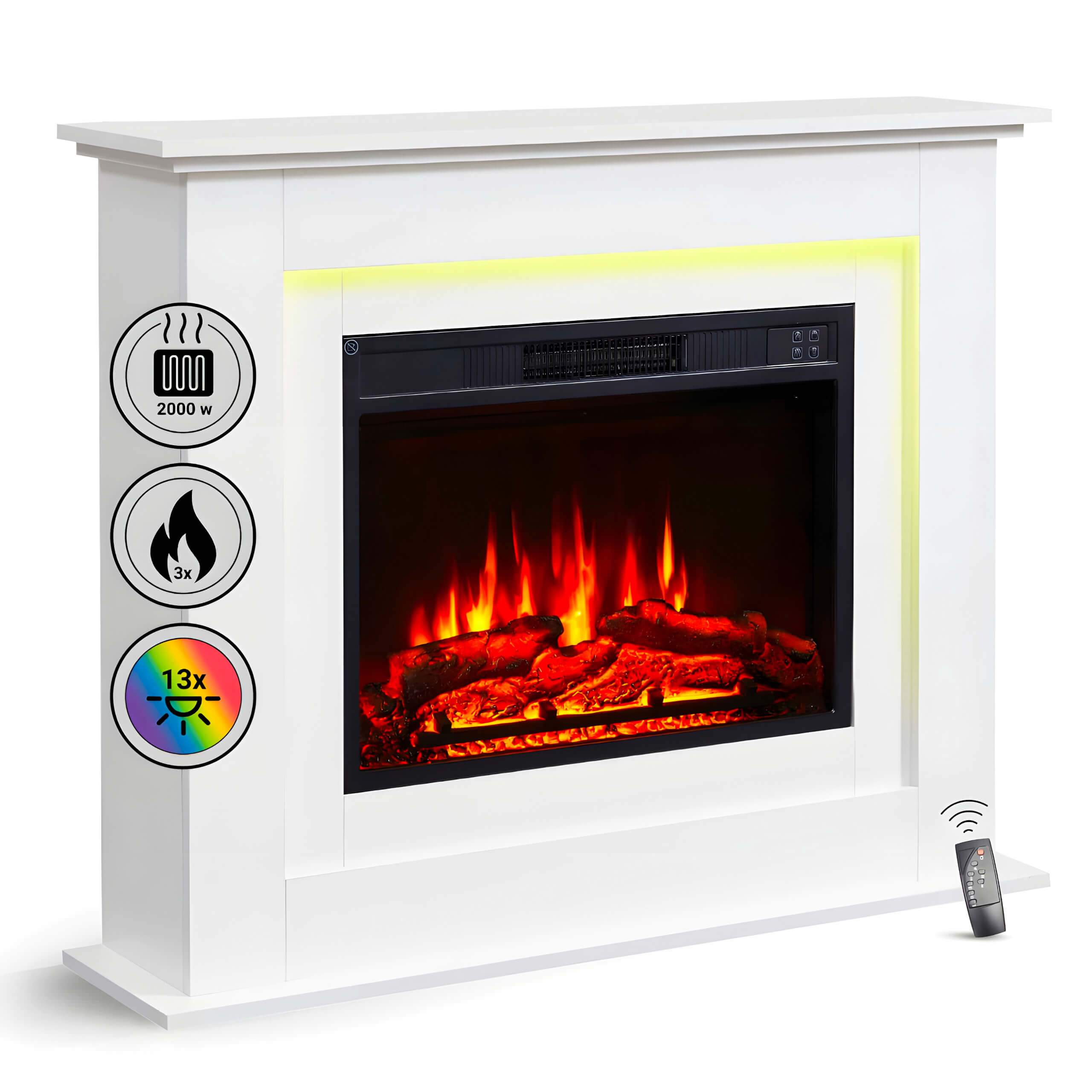 Το επιδαπέδιο τζάκι Richen Feel αποτελείται από την ξύλινη επένδυση MDF σε λευκό χρώμα και το ηλεκτρικό τζάκι. Με κομψό σχεδιασμό, ενσωματώνεται άψογα σε κάθε δωμάτιο και προσφέρει μια ζεστή ατμόσφαιρα τζακιού με τρισδιάστατο εφέ φλόγας.