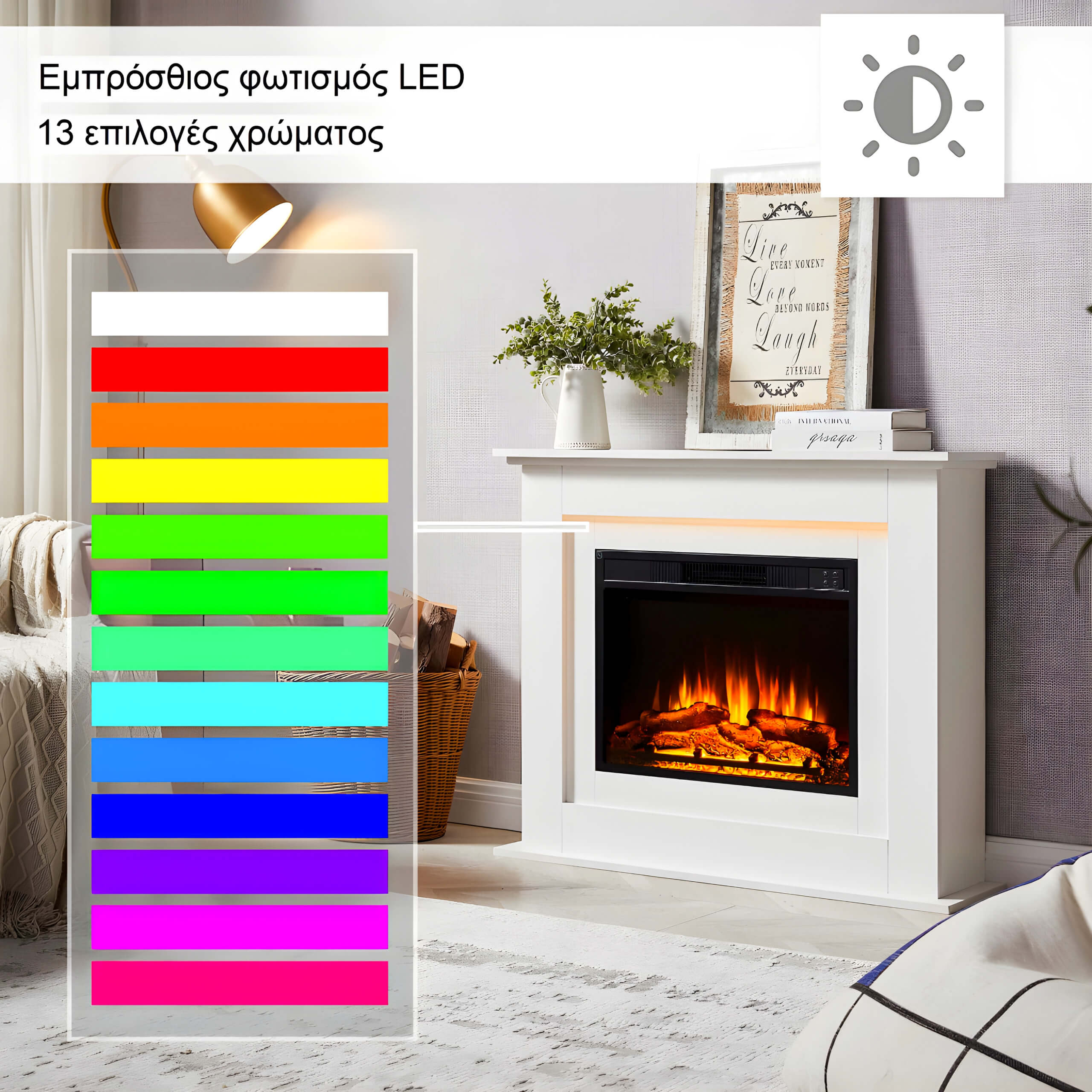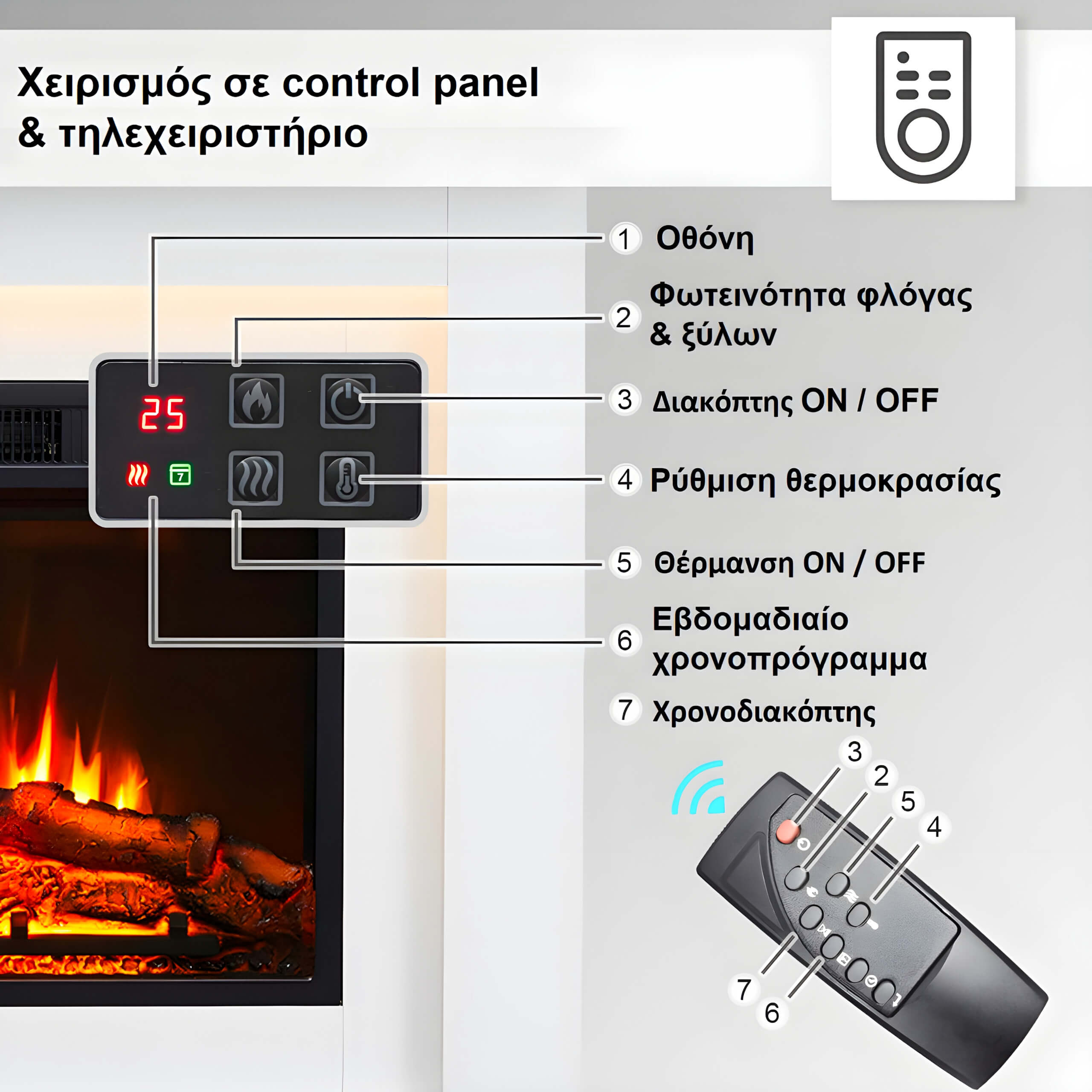 - Το εφέ φλόγας LED λειτουργεί ανεξάρτητα από τη θέρμανση.