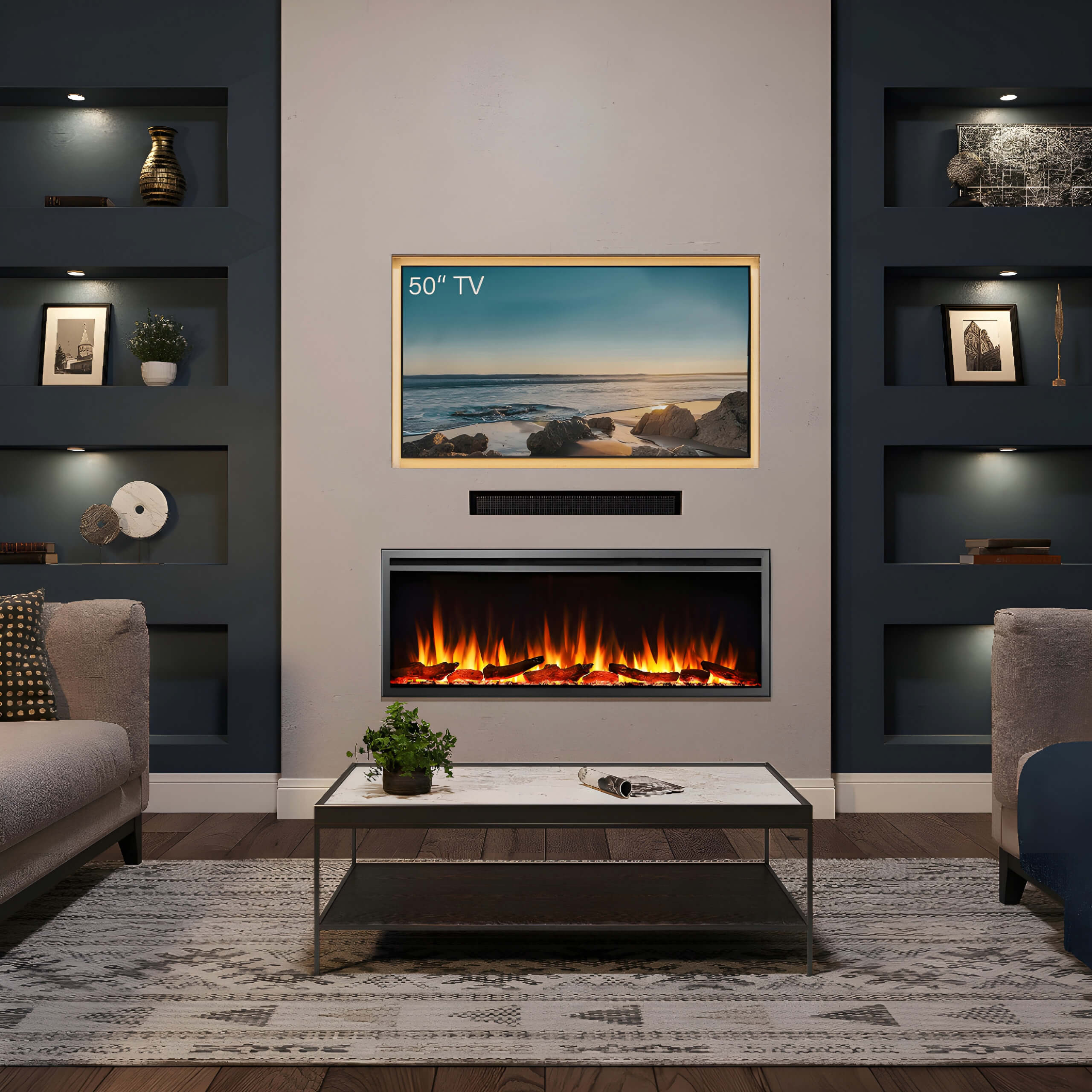 Με ηχητικά εφέ καύσης ξύλων πραγματικού τζακιού δύο επιλογών με 5 επίπεδα έντασης ξεχωριστά