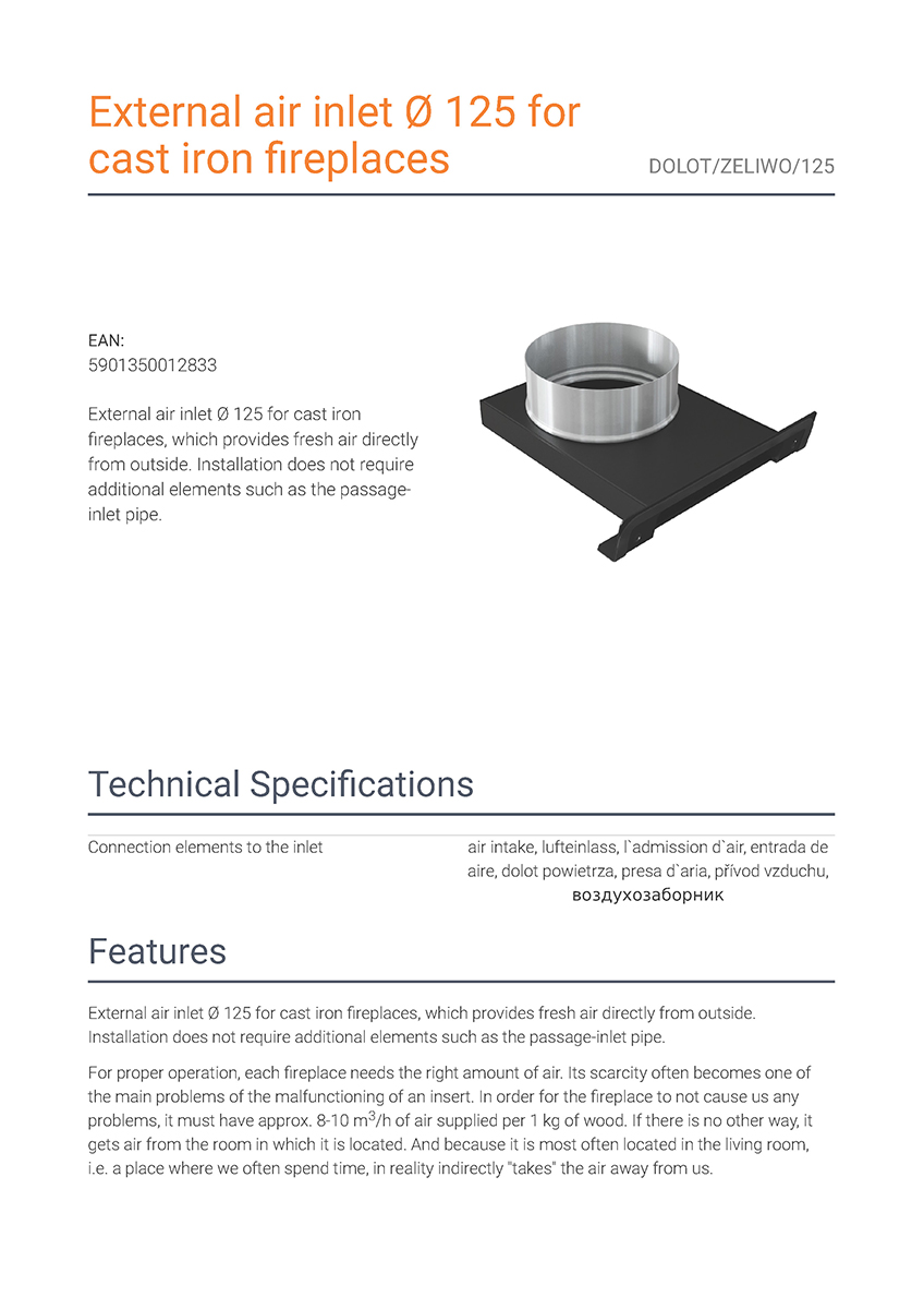 Το DOLOT ZELIWO/125 αποτελεί σύστημα εισαγωγής εξωτερικού αέρα με διάμετρο Φ125.