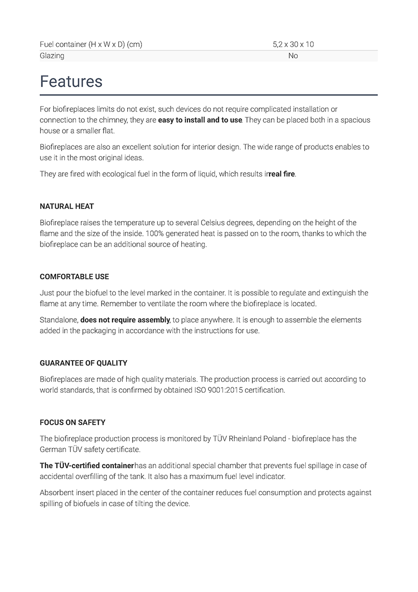| Τύπος προϊόντος | Τζάκι βιοαιθανόλης |