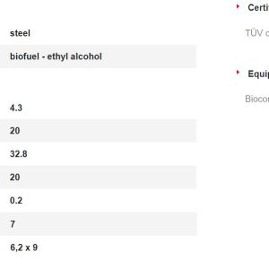 | Καύσιμο | Βιοαιθανόλη 95 – 96,6% |