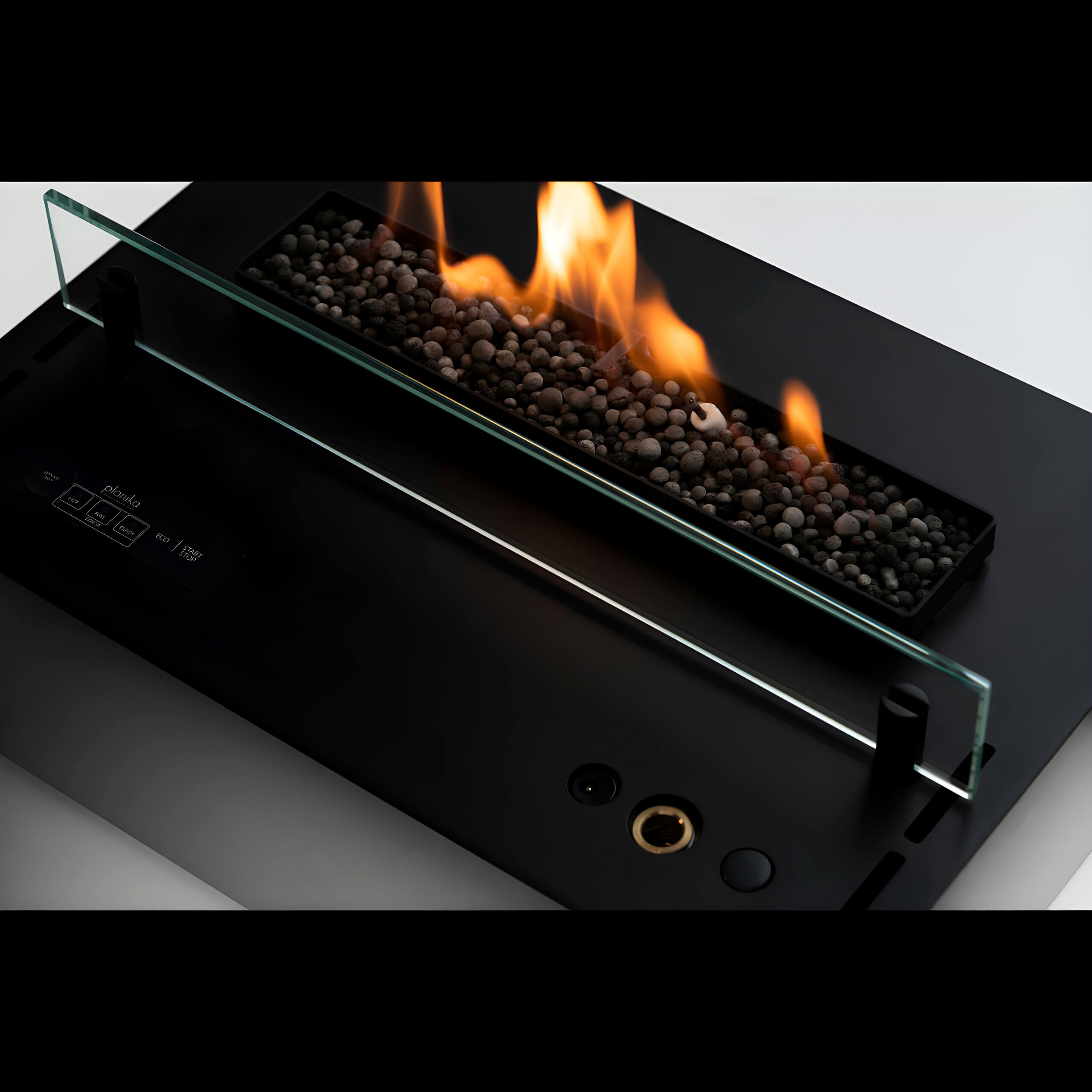 Ένα εύχρηστο και μινιμαλιστικό τηλεχειριστήριο σας επιτρέπει να ρυθμίζετε τη φωτιά στον Planika Senso Burner και να ενεργοποιείτε την οικολογική λειτουργία για να απολαμβάνετε τη φλόγα σας για περισσότερες ώρες.