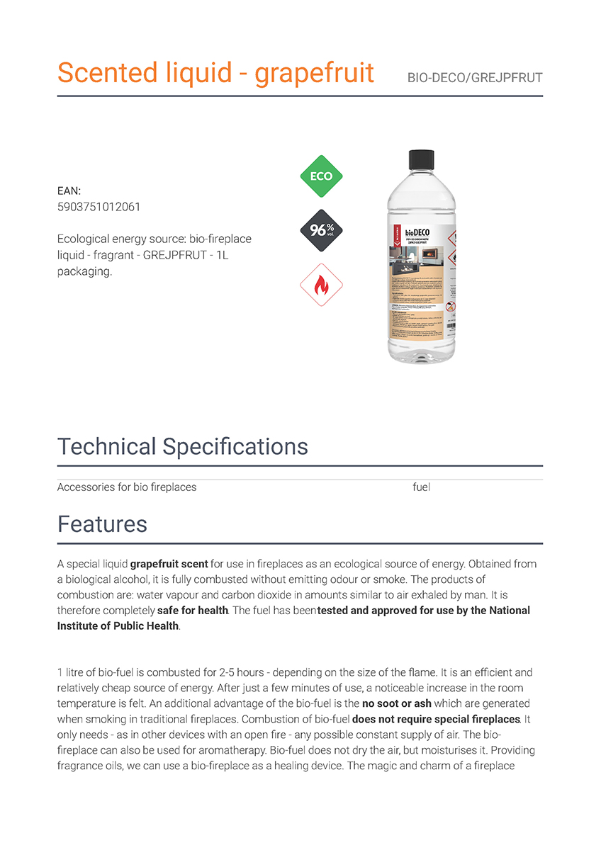 KRATKI BIO-DECO GRAPEFRUIT – ΥΓΡΟ ΒΙΟΑΙΘΑΝΟΛΗΣ (96%) με χωρητικότητα 1 λίτρο και άρωμα γκρέιπφρουτ.